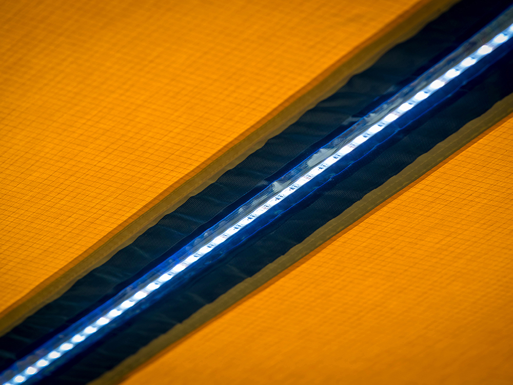 The slim dimensions of the LED light strip simplifies pack up. The light can be rolled up with the awning roof after use and not removed, keeping everything together for your next adventure (make sure the joining cable hangs out about 10cm from the sleeve). The ARB awning light provides up to 1200 lumens with a choice of either cool white or amber colour mode and is dimmable via a waterproof digital dimmer switch. Building a high performance light into the roof came with some challenges. One was making sure we could get the LED strip small enough as well as making sure we could keep them cool so they would not de-rate and dim prematurely. This has been achieved by using quality LED chips that can handle more heat than a standard strip light and also attaching the strip light to an aluminium track for heat dissipation, all sealed in a water tight resin.