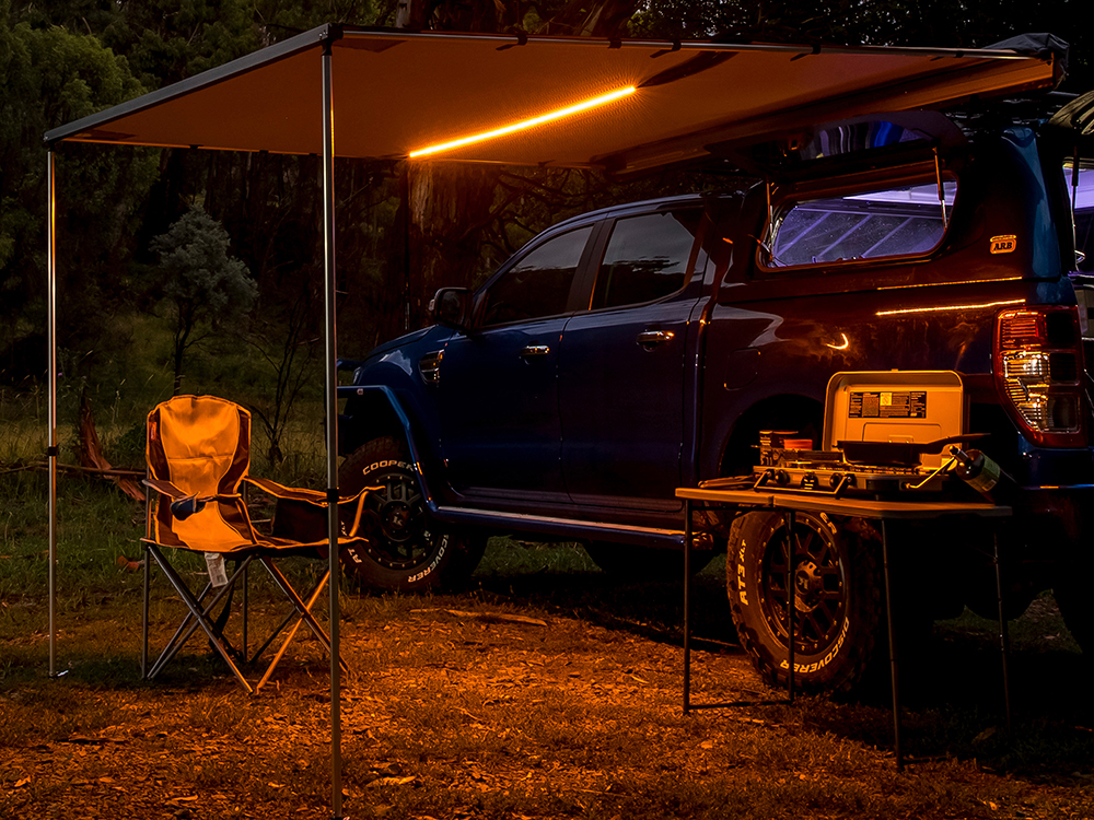 When touring or camping, having adequate lighting is one of the most important items needed for any trip. Having good bright light, in the right spot and not in your eyes, will further enhance your overnight experience in the great outdoors. Introducing the new ARB awning and light kit, an enhancement to the existing high-quality ARB awning range, an LED light strip is incorporated into the awning roof. Just like in your home, good quality lighting is in the ceiling, not the walls - therefore placing the light right where it's needed and not harshly in your eyes is important.