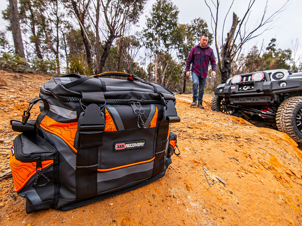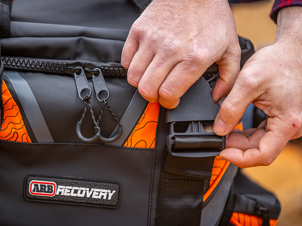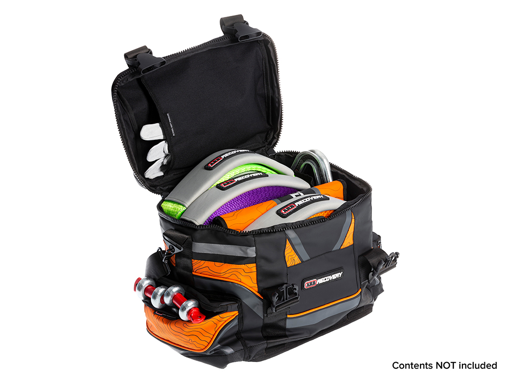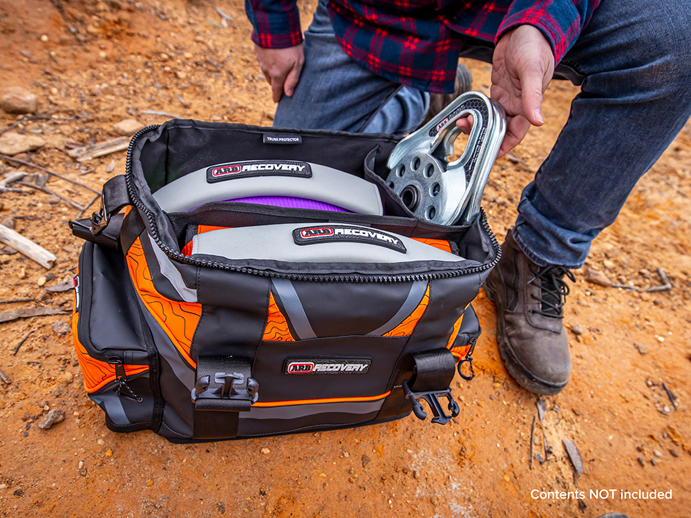 ARB’s winch pack is designed to fit a complete recovery kit including snatch strap, tree trunk protector, winch extension strap, snatch block, recovery damper, bow shackles and gloves. The winch pack is sold individually and does not come stocked with the straps. All items sold separately so the user can select the correct strap weights for their vehicle.
