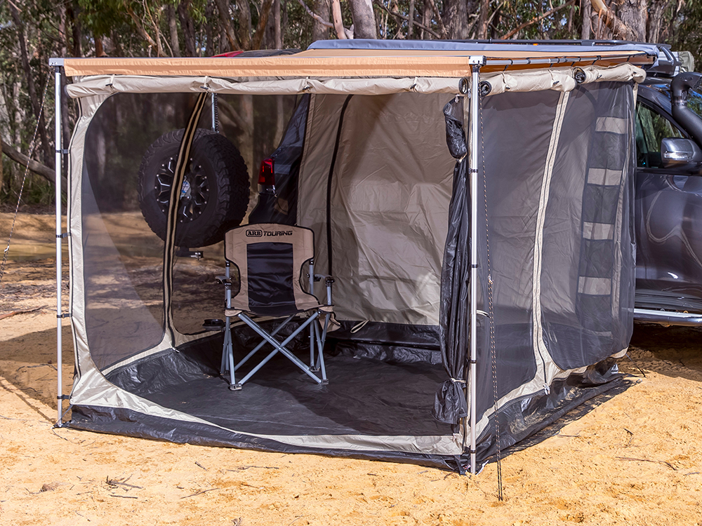 Designed to function as a fully enclosed room or mosquito net, the new ARB deluxe awning room with floor provides protection from the weather, insects and provides additional privacy. Easy and quick to set up the ARB deluxe awning room can be used with 2500 and 2000 model awnings and features a durable waterproof floor and its own separate ceiling to help keep you cooler. All main wall panels incorporate zipper operated two way solid and mesh access doors for easy access and to accommodate changing weather conditions. Vehicle wall is solid zipper wall only. Note - Kit does not include the awning.