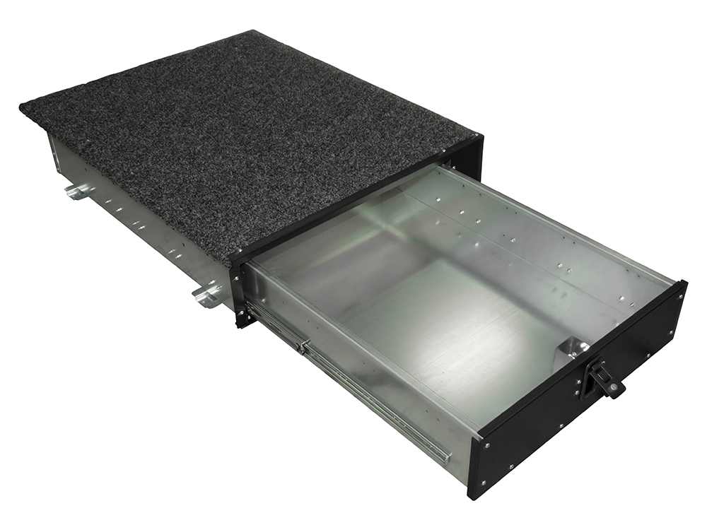 These Defender drawer systems are ideal for storing items that you keep in your vehicle that you would want to be hidden away from view and can be locked for extra security. The heavy-duty drawers with smooth roller action, fit between the wheel arches and create very useful extra storage space. Drawers extend almost full length for ease of access with a maximum load of 80kg. Hard wearing textured black finish complements the heavy-duty carpeted top.