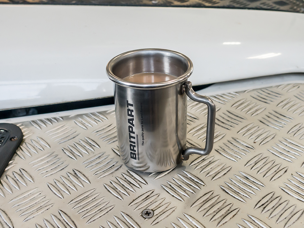 The handle, also of 304 grade (8mm) round bar, pressed into shape. This resembles an exhaust hanger. Each Britpart branded mug is finished by hand polishing.
