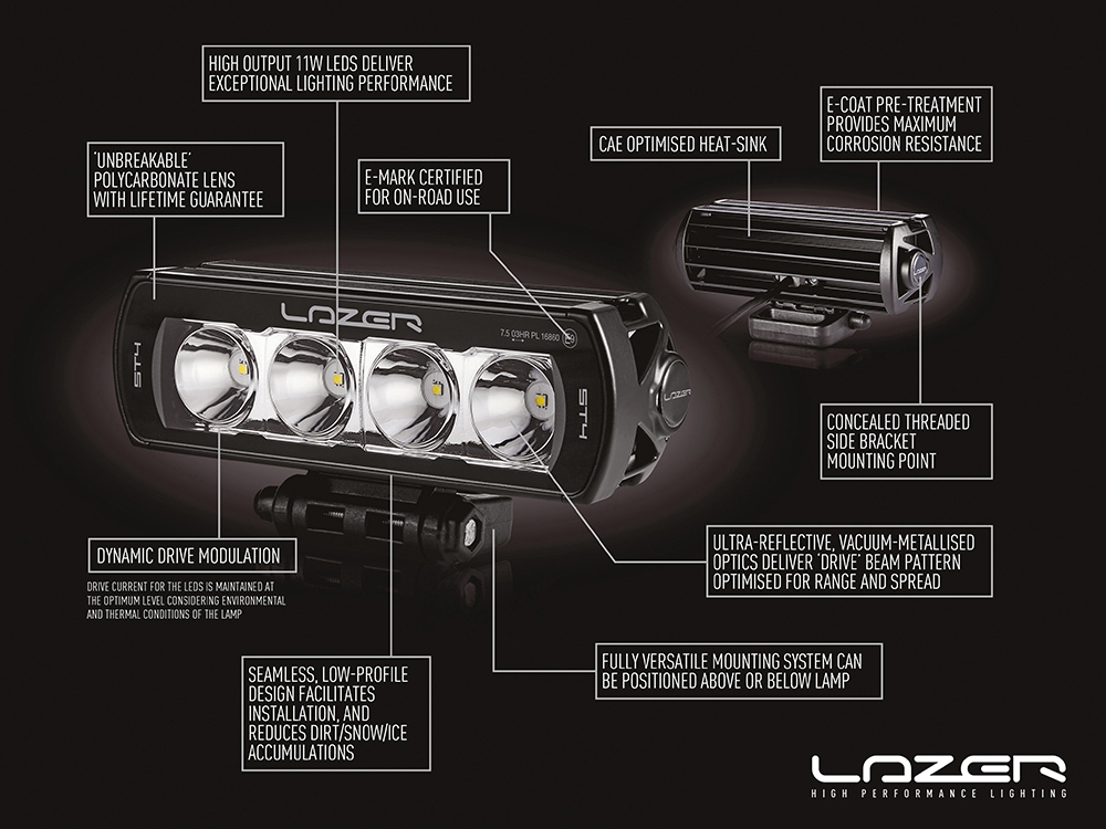The ST4 Evolution is a hugely versatile LED spotlight the size of which has proved particularly popular within the road tuning, pick-up truck and 4x4 markets. At 204mm length, the ST4 delivers incredible lighting performance which belies its diminutive size. ECE approval ensures the light is suitable for full integration into your vehicles existing electrical system.