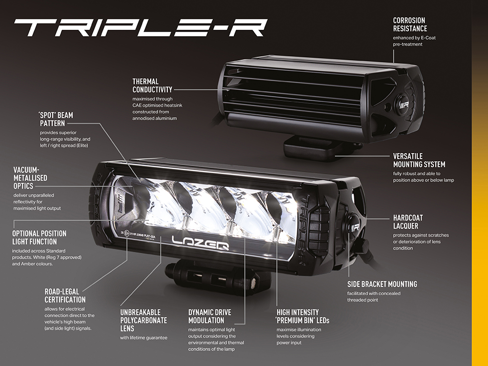 The Triple-R 28 has been given Elite level performance through the adoption of a combination of the latest high efficiency LED technologies and modified optics, used to deliver more distance illumination and more left/right spread of light. Borne out of extensive testing at the highest levels of professional track and rally motorsport, the Triple-R Elite represents the pinnacle of LED driving light technology. Subtle styling updates have resulted in a clean contemporary design, with a more aggressive edge, to match the aesthetic design prevalent on modern vehicles.