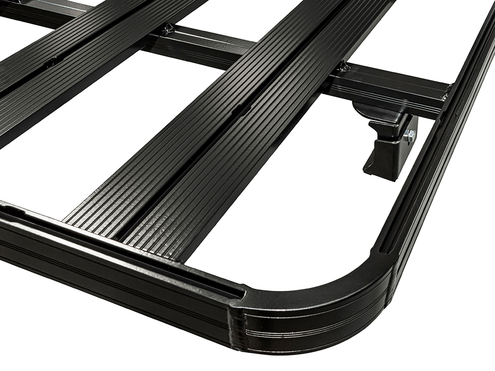 These roof racks are manufactured from aluminium with a smart black powder coated finish. Fully welded, they are extremely strong, versatile, with a low profile and are easy to use. The floor plank profiles are orientated longitudinally which results in a reduction in wind noise. There are nut channels on all the extrusions to allow for easy fitment of 3rd party accessories.