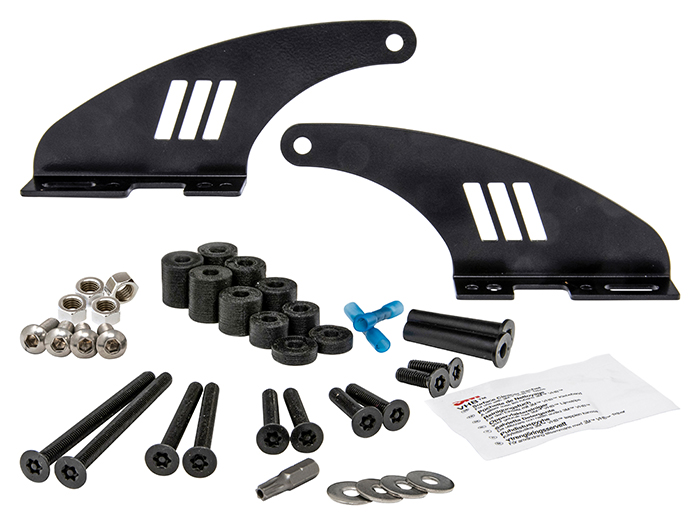 To complete the mounting of different length light bars, cylindrical carbon spacers, of varying lengths, are provided to aid positioning. Installation of the brackets is completed using M6 fasteners fixed within the gutter location.
