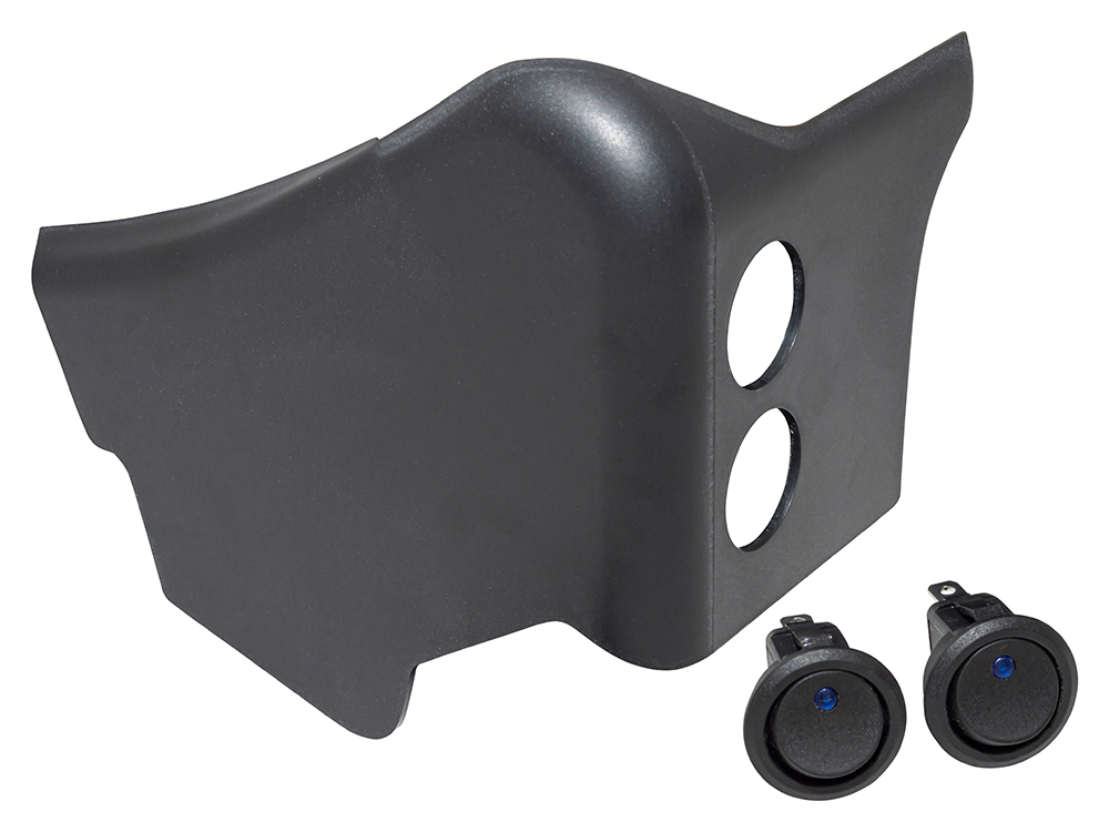 These switch pods were designed to blend into the dash and allow for 2 switches. The pod is supplied with two switch and is made from durable ABS plastic that easily mounts into position using the included double-sided tape.