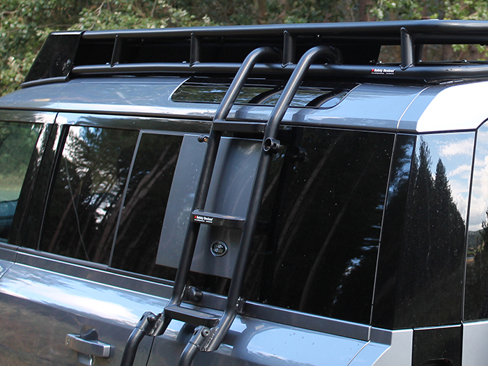 Roof access ladder that can be fitted to either side of the vehicle. It can be installed standalone or in conjunction with the Safety Devices Roof Rack Assembly