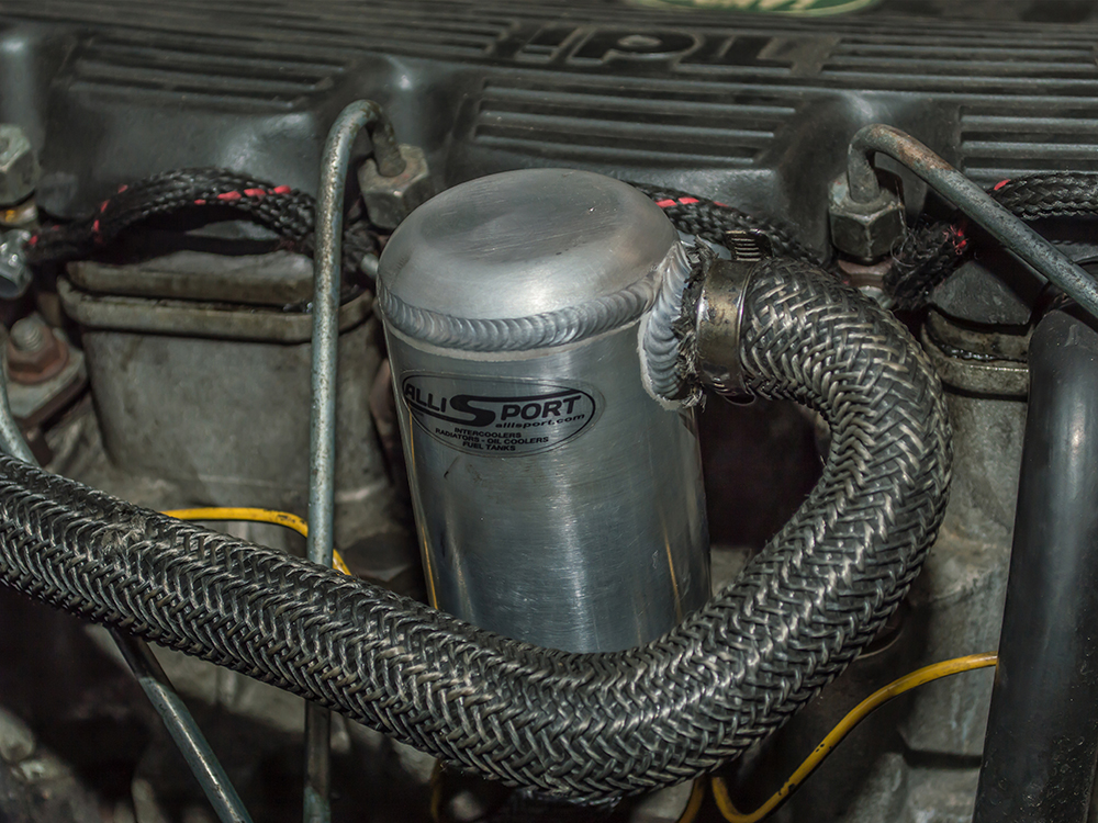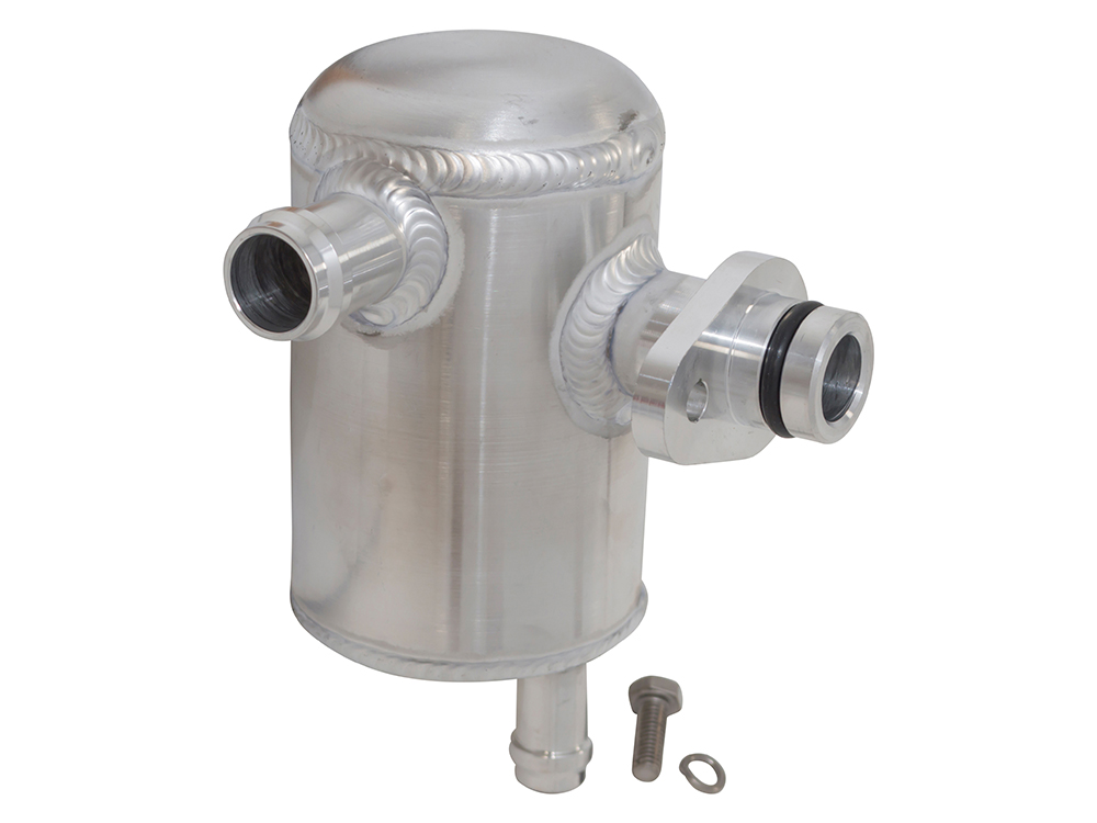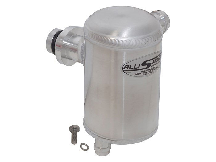 AlliSport high performance aluminium engine breather oil catch tank separator. Manufactured using mounting flange machined from billet aluminium. All engines need to breathe crankcase pressure to atmosphere, and most are designed to re-enter the air intake system after the air cleaner.