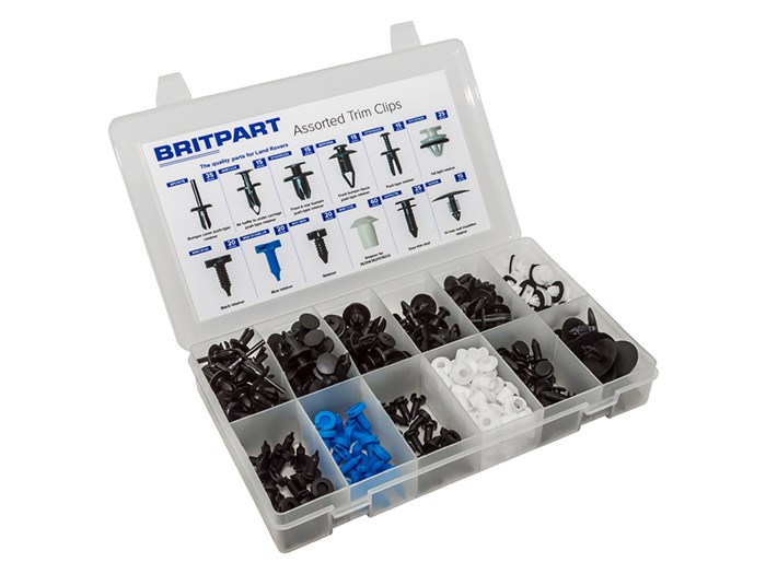 Box of assorted popular trim clips and fixings commonly used on Land Rovers. Supplied in a handy presentation box.