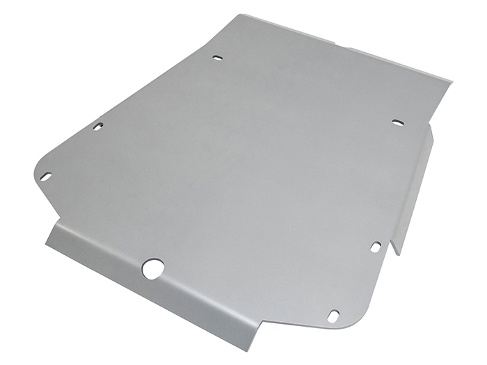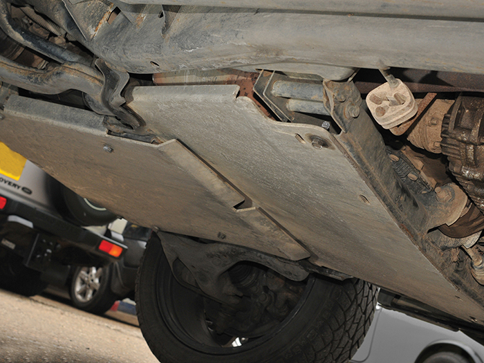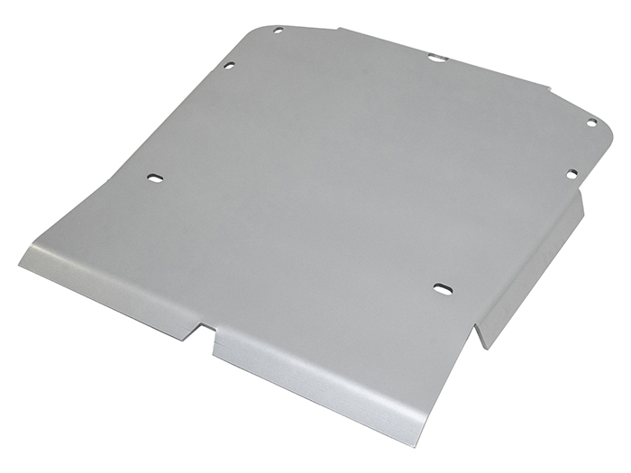 DA7536 shown with DA7532 also fitted. This sump plate protects the underside of the engine and allows the car to slide over objects, forward and backwards due the rear lip. With a natural finish the plate is made from 6mm 5083 grade aluminium and has been water jet cut to a precise finish. Plate bolts directly into existing holes and bulkheads already in the chassis, using the standard Land Rover fixings.