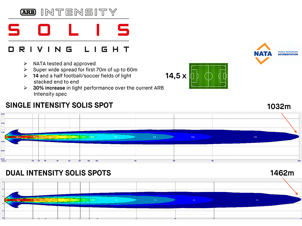 The ARB Intensity Solis provides a whole new level to the ARB Intensity range of driving lights and bars. Introducing digital dimming control and providing a massive 1 lux @ 1,032m for an individual spot beam via the 30 x 4W combined with 6 x 10W high output OSRAM LEDS provides a smooth driving beam.