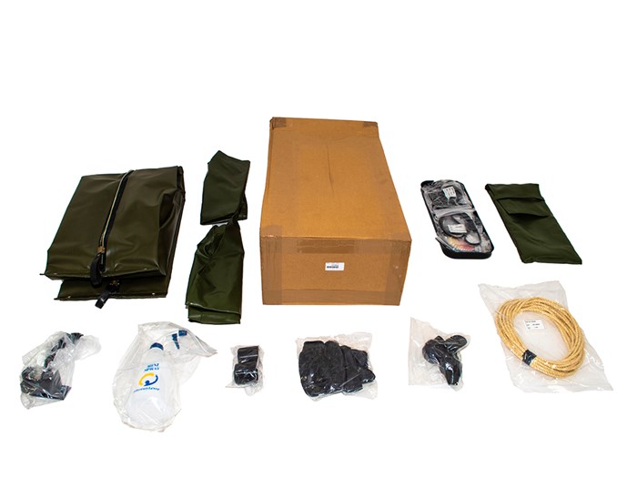 A range of camping equipment including ARB fridge freezers, chairs, awnings and wind breaks.
